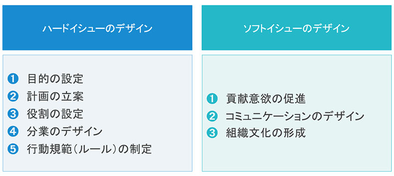 管理職が組織を動かすには、「ハードイシュー」と「ソフトイシュー」の両面をデザインし、それらを統合させることが必要です。