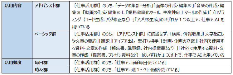 図表4:[仕事活用群]の活用内容と活用頻度による分類