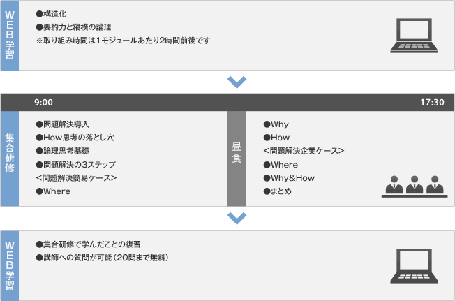 | サービス名 | 問題解決思考研修〈基礎〉(プログラム名:WEB+集合研修で学ぶ問題解決思考強化研修) |