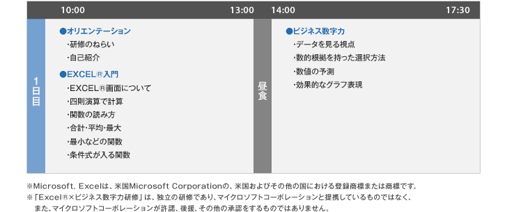 | サービス名 | Excel(R)とビジネス数字の基礎力習得研修(プログラム名:Excel(R)×ビジネス数字力研修) |